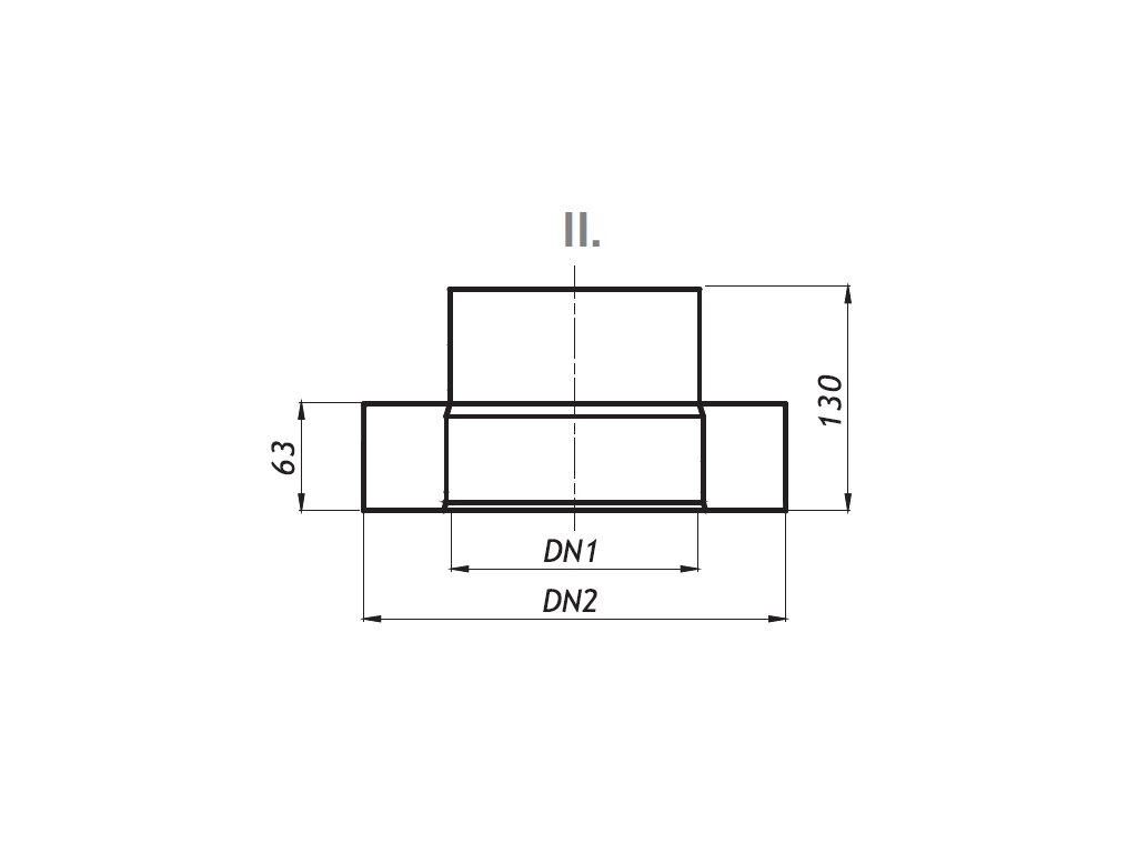 Přechod jednopláště na trojplášť pro sopouch 45° o 130/225 mm - kouřovod