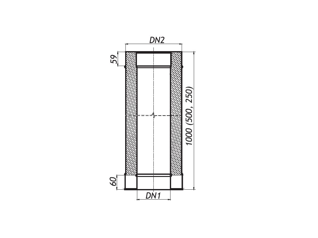 Tříplášťová izolovaná komínová roura - průměr 130/225 mm, délka 1000 mm ( 1 m ) - kouřovod