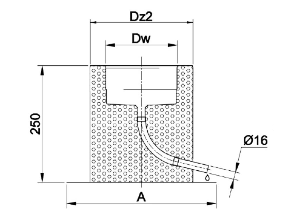 Tříplášťová (třívrstvá) nerezová izolovaná miska pro odvod (boční) kondenzátu se základnou - průměr 120/180 mm, tloušťka stěny roury 0,6 mm, kouřovod