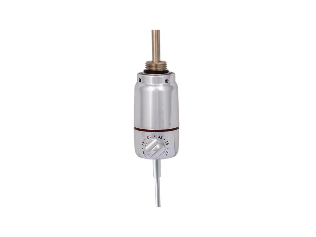 Elektrická vyhrievacia špirála 1200W s termostatom chrómovej farby je vhodná pre kúpeľňové rebríkové radiátory.