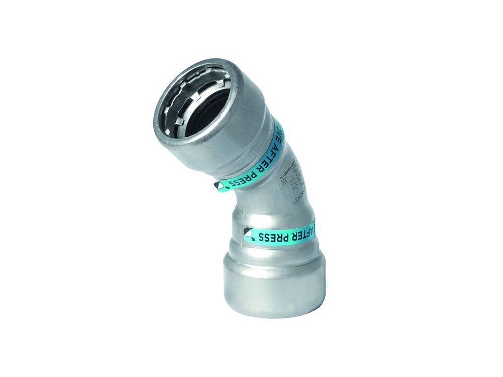 Lisovacie koleno 45° FF 3/4" Heavy Steel umožňuje spájať hrubostenné oceľové rúry bez zvárania.