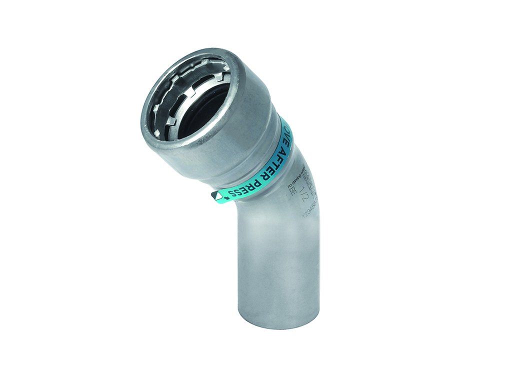 Lisovacie koleno 45° MF 3/4" Heavy Steel umožňuje spájať hrubostenné oceľové rúry bez zvárania.