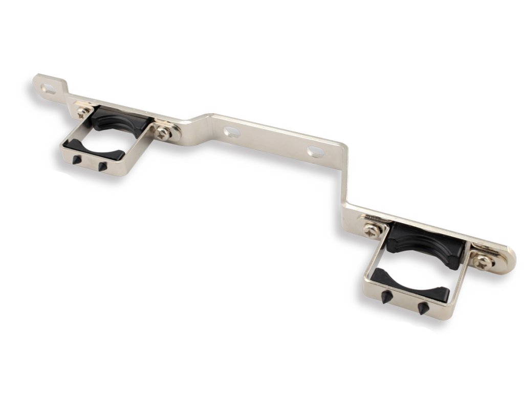 Univerzálny montážny držiak slúži na pevné a stabilné uchytenie dvoch mosadzných alebo nerezových líšt rozdeľovača (prívod a spiatočka).