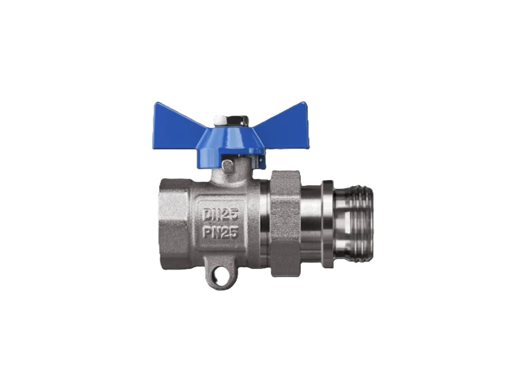 Poniklovaný ventil k rozdeľovaču bez teplomera 1" MF je uzatvárací guľový ventil so šróbením s vonkajším závitom určený pre rozdeľovače kúrenia a podlahového vykurovania. Niklová mosadz zaručuje dlhú životnosť.