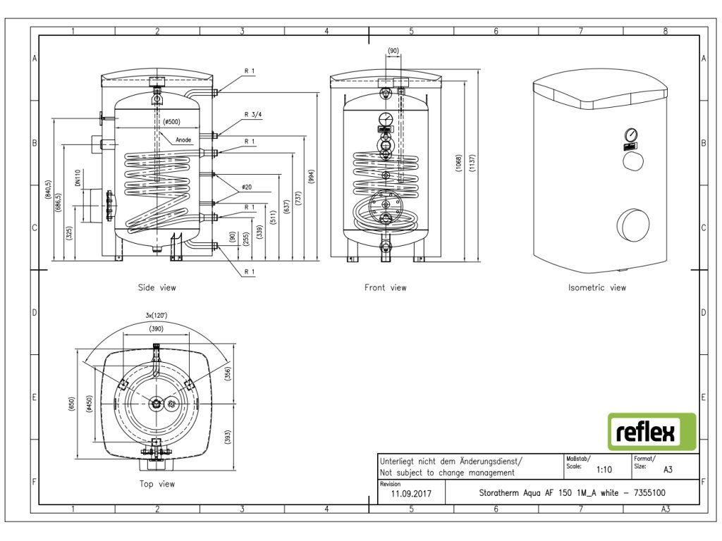 Reflex stacionárny zásobníkový ohrievač Storatherm Aqua, AF150/1M_A, s izoláciou