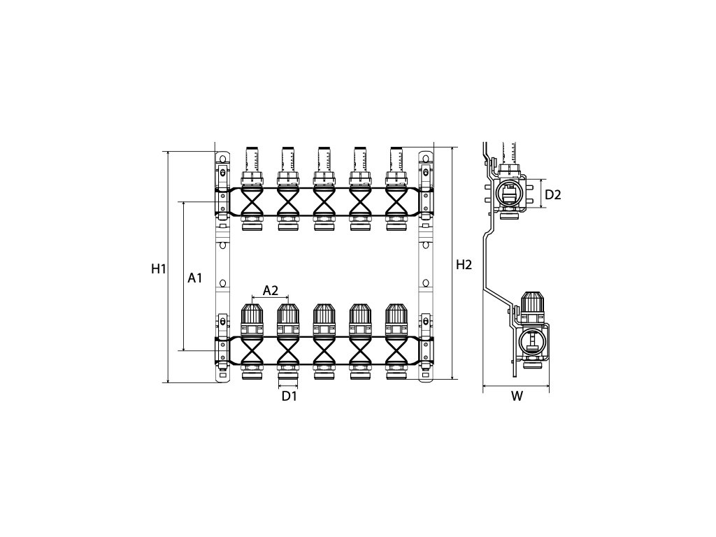 Nerezový rozdeľovač s prietokomermi – 12 okruhov – na podlahové kúrenie (KHTX_RI-VT-12) je určený pre moderné systémy podlahového vykurovania v rodinných domoch, bytových aj komerčných objektoch. Rozdeľovač je vyrobený z kvalitnej nehrdzavejúcej ocele AISI 304, ktorá zaručuje vysokú odolnosť voči korózii, dlhú životnosť a spoľahlivú prevádzku aj pri dlhodobom zaťažení.