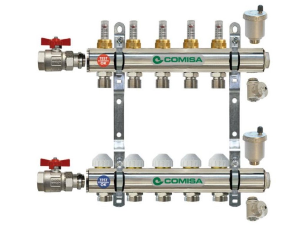 Súprava pre 6 okruhov je navrhnutá pre presnú distribúciu tepla, maximálnu energetickú účinnosť a jednoduchú montáž v rodinných domoch či bytoch.