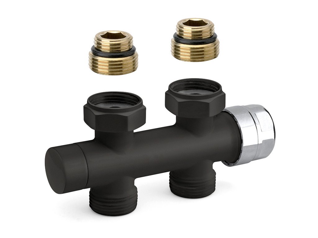 Termostatický priamy H ventil M3/4"xF3/4" s adaptérmi M3/4"xM1/2" - čierna