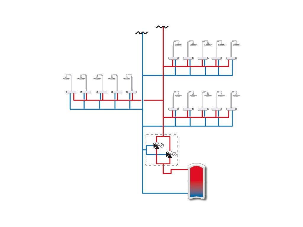 ESBE UPTT522 45–65 °C je výkonná termostatická zmiešavacia jednotka navrhnutá pre systémy s vysokými nárokmi na prietok, ako sú bytové domy, školy či priemyselné prevádzky.