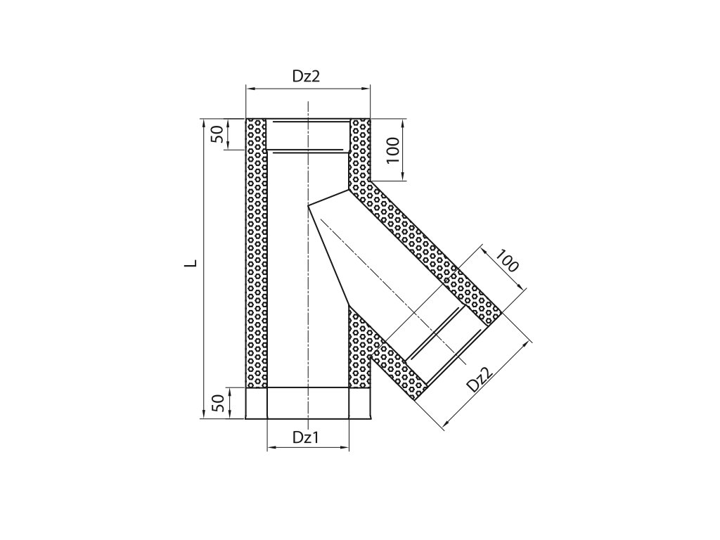 Trojplášťový (trojvrstvový) nerezový izolovaný komínový sopúch je systémový prvok určený na bezpečné a plynulé napojenie dymovodu na komínové teleso pod uhlom 45°. Je navrhnutý pre moderné trojplášťové komínové systémy, kde je kladený dôraz na vysokú prevádzkovú bezpečnosť, dlhú životnosť a optimálny odvod spalín.