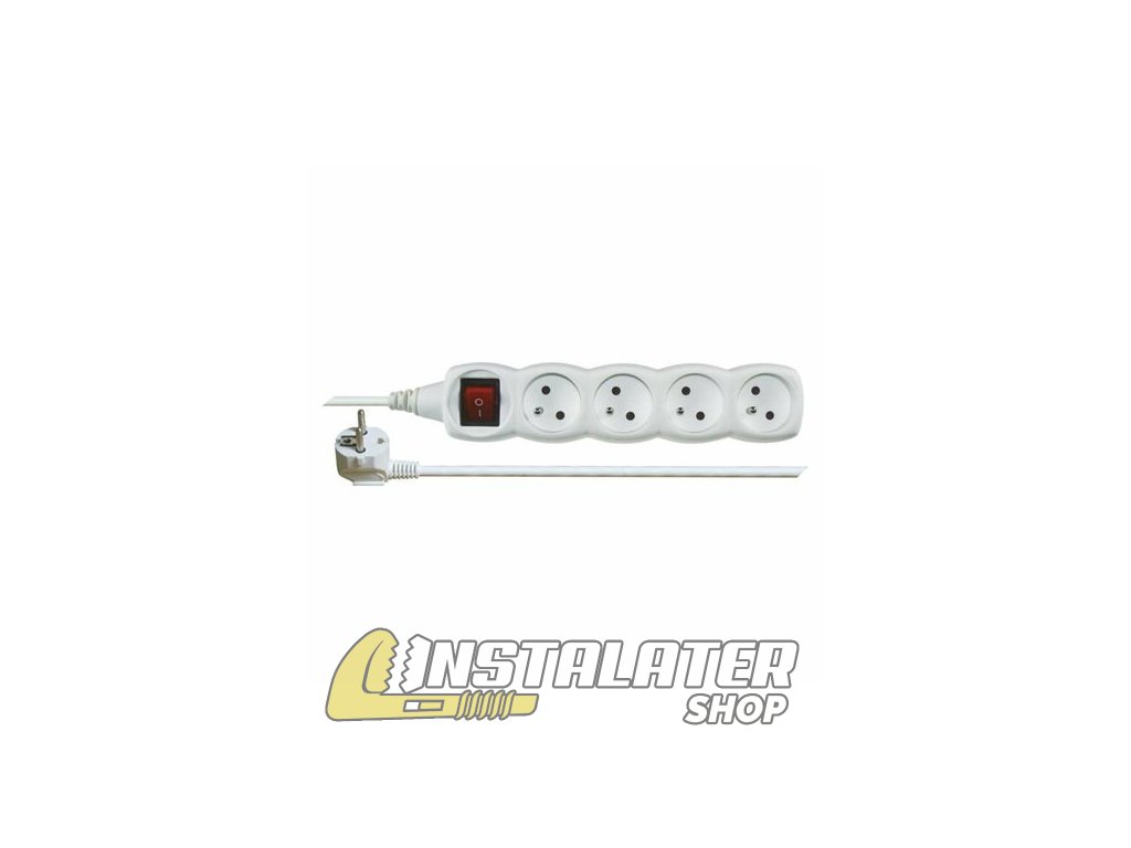 Biely predlžovací prívod, 4 zásuvka s vypínačom, dĺžkou 5 ma prierezom vodiča 1 mm2. Vhodný pre maximálnu záťaž 10 A max. Predlžovací prívod 5 m na 230 V~ slúži na predĺženie elektrickej energie tam, kam pevná zásuvka nedosiahne.