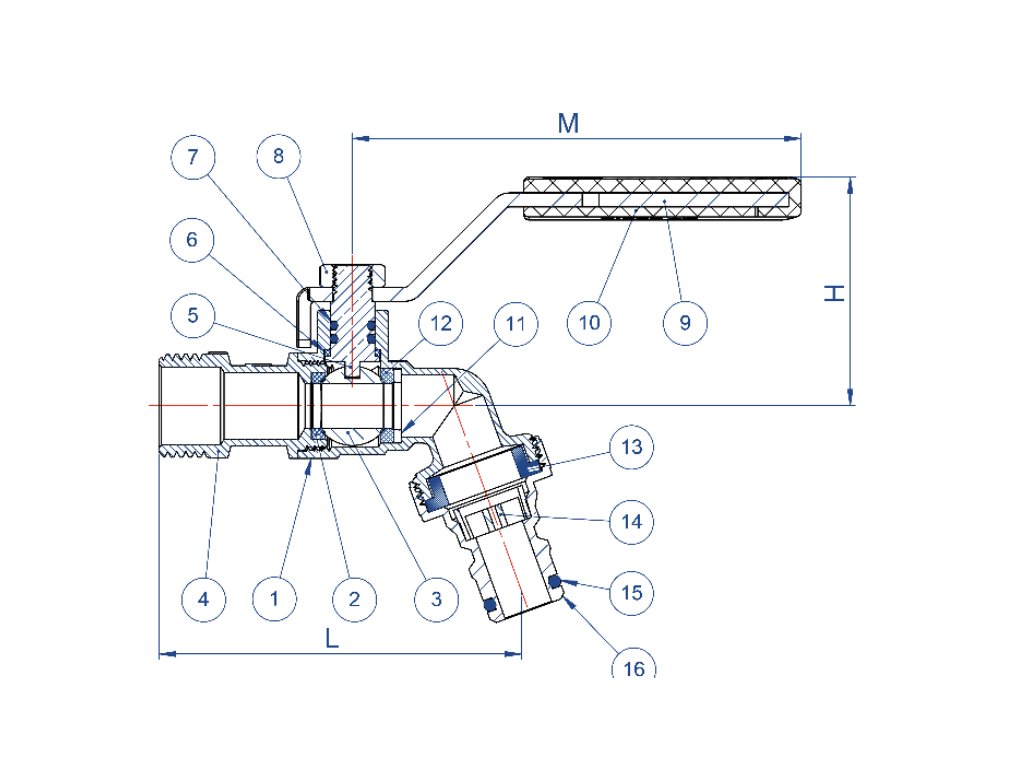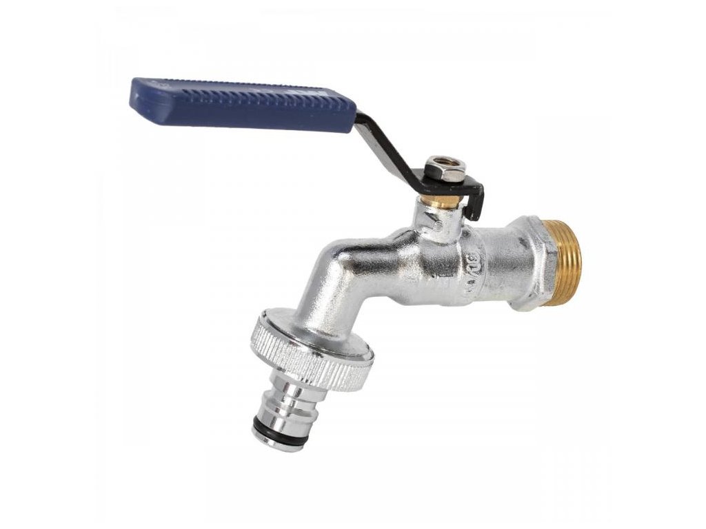 Telo ventilu je vyrobené z poniklovanej mosadze CW617N s kvalitným PTFE tesnením, čo zaručuje plynulý chod a vysokú tesnosť aj po dlhom čase. Dominantou je ergonomická modrá páka z uhlíkovej ocele s antikoróznym náterom, ktorá umožňuje ovládanie ventilu s minimálnym úsilím. Ventil je vybavený praktickým rýchlospojkovým adaptérom pre okamžité pripojenie záhradnej hadice a disponuje nezámrzným systémom, ktorý chráni ventil pred poškodením v chladnejšom počasí.