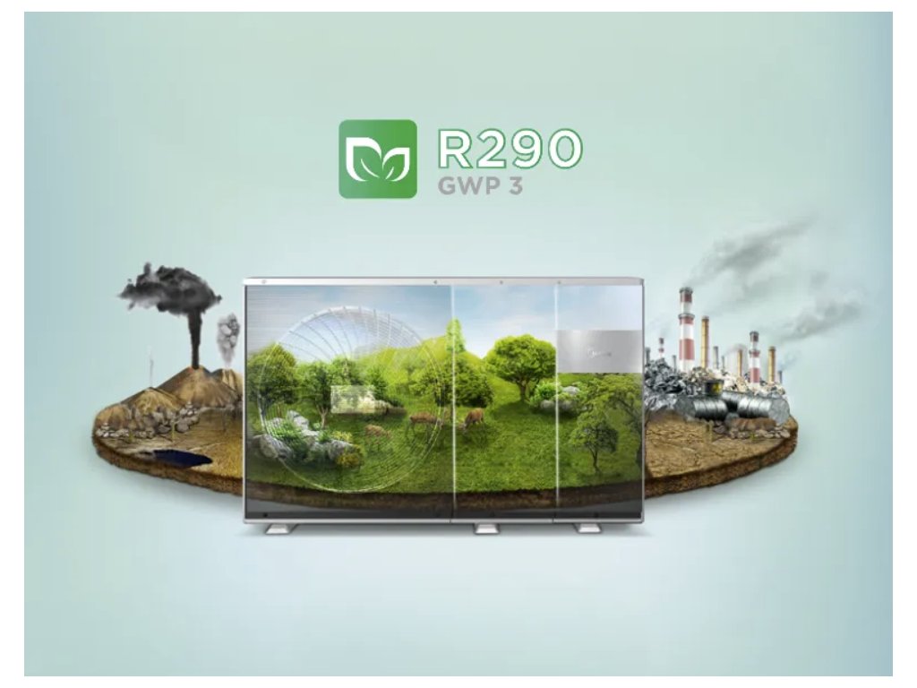 Tepelné čerpadlo Midea M-Thermal predstavuje špičku v oblasti vykurovania, chladenia a prípravy teplej vody. Využíva ekologické chladivo R290 (propán), ktoré vďaka svojej nízkej hodnote GWP prispieva k uhlíkovej neutralite v EÚ. Vďaka termodynamickým vlastnostiam R290 a pokročilej technológie dokáže tepelné čerpadlo dosiahnúť skvelý výkon aj v extrémnych chladoch a stále ponúknuť užívateľovi žiadaný komfort.