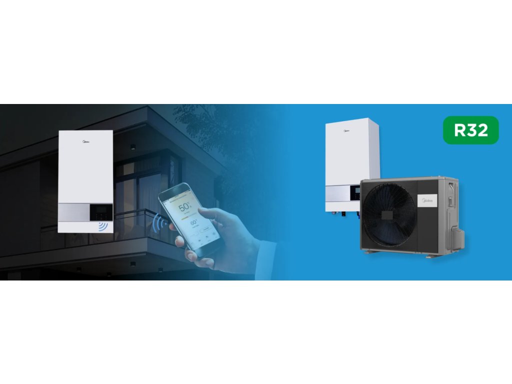 Midea M-Thermal Split R32 tepelné čerpadlo typu vzduch-voda. Systém je tvorený vonkajšou jednotkou a vnútorným hydromodulom so vstavaným zásobníkom vody, čo umožňuje flexibilnú inštaláciu a vysokú účinnosť počas prevádzky. Vďaka ekologickému chladivu R32 sa kladie dôraz na minimálne znečistenie ovzdušia.