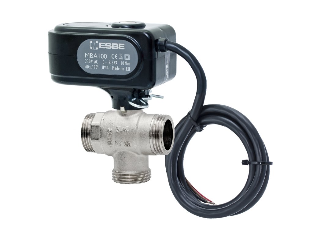 3-cestný motorizovaný guľový ventil ESBE MBA132 G 1" je vysoko výkonný zónový ventil navrhnutý na prepínanie toku v systémoch vykurovania a chladenia.