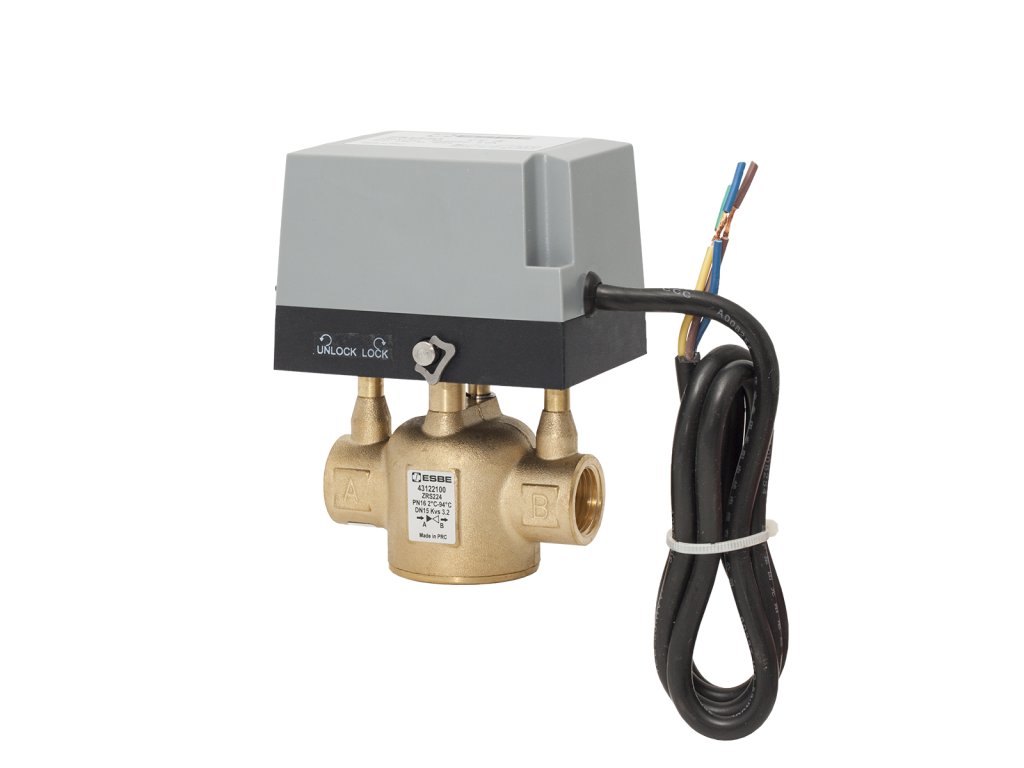 ESBE ZRS224 DN 20 je 2-cestný motorizovaný zónový ventil s pružinovým spätným chodom, určený na automatické uzatváranie alebo otváranie prietoku v uzavretých systémoch vykurovania a chladenia.
